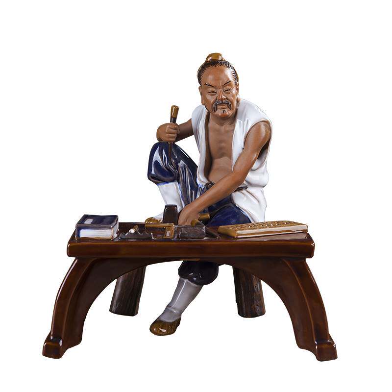中国石湾公仔鲁班祖师像 办公室客厅建筑装饰品塑陶瓷人物摆件 中热门设计联盟服务商