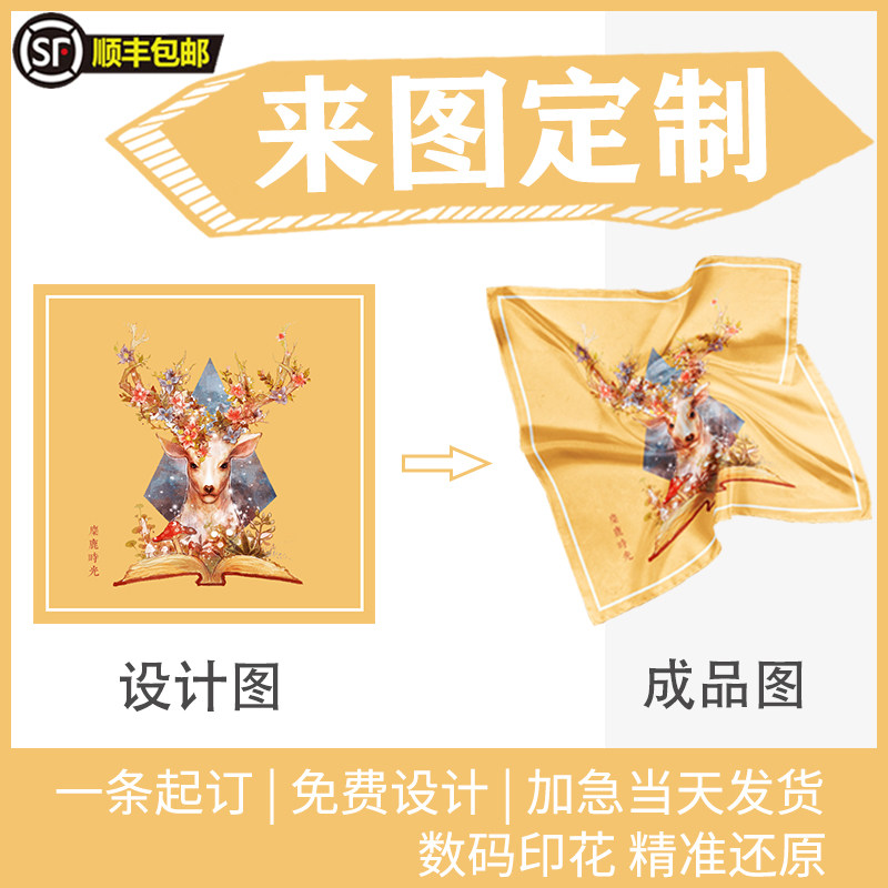 丝巾定制印图企业LOGO来图定制儿童画 diy真丝方巾女围巾毕设订制热门设计联盟服务商