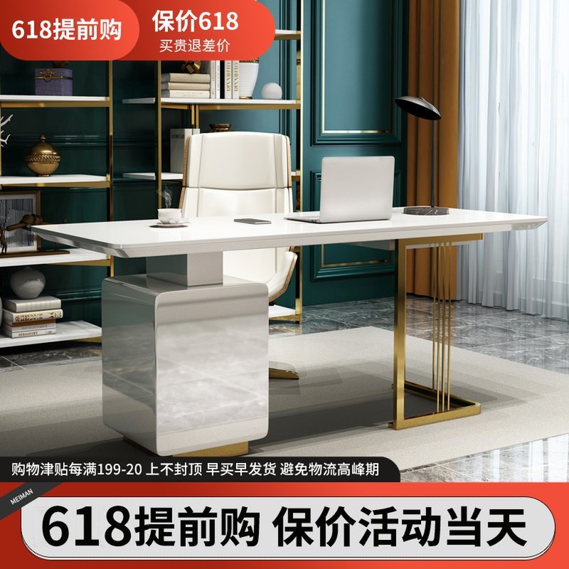 轻奢书桌书房电脑台式桌家用卧室北欧烤漆写字台白色医美资讯桌热门设计联盟服务商
