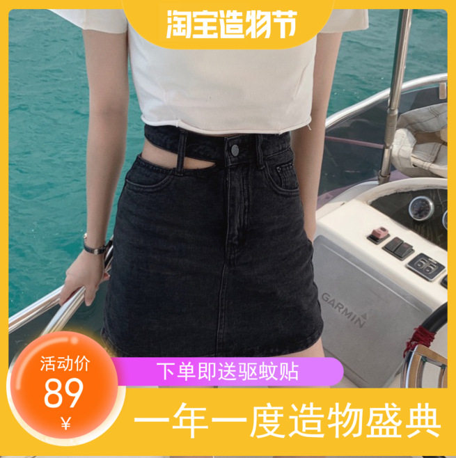 夏季新款其他纯色修身字百搭镂空牛仔超短裙子显瘦半身一步裙女装热门设计联盟服务商
