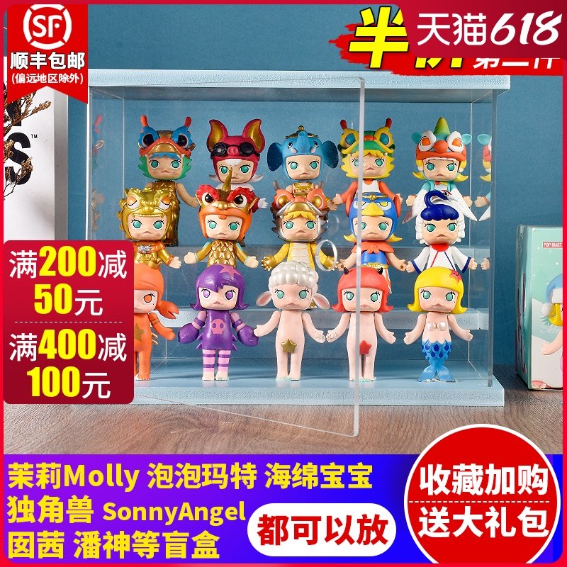 盲盒彩色收纳展示架 手办展示盒泡泡玛特盲盒娃娃 透明防尘展示柜热门设计联盟服务商