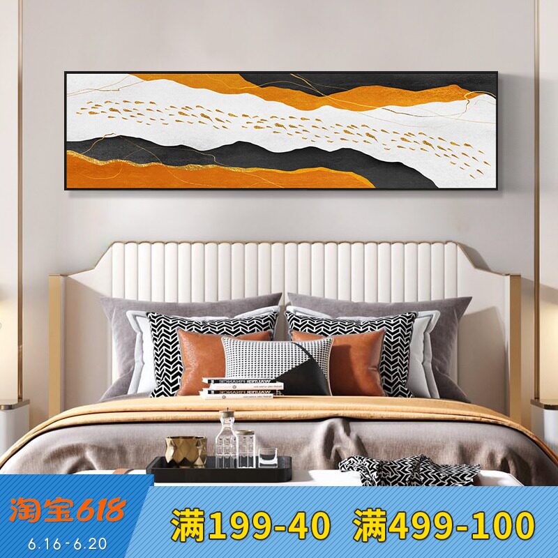 预留天空 现代轻奢卧室装饰画床头横幅橙色色块挂画客厅抽象墙画热门设计联盟服务商