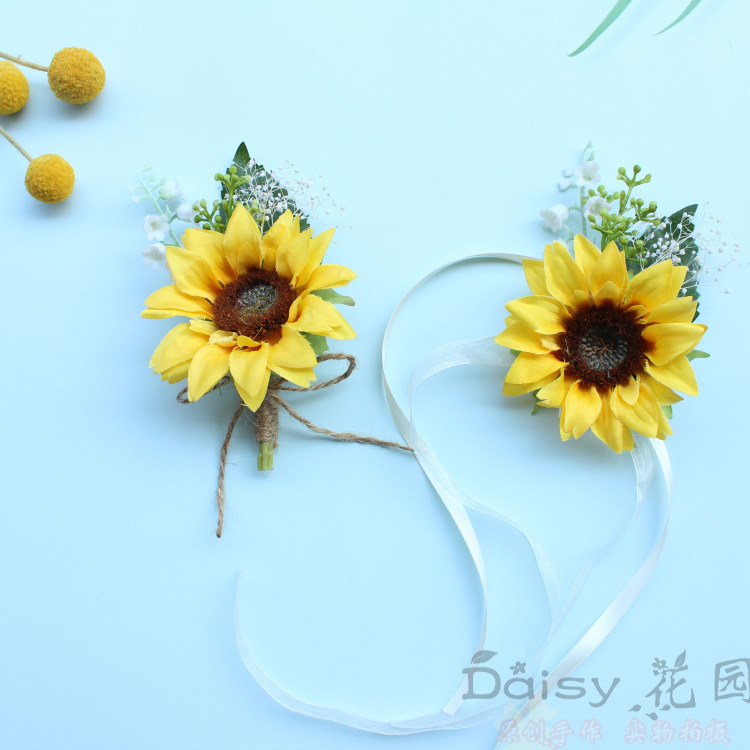 森系仿真向日葵新娘新郎手腕花胸花结婚姐妹团手花婚纱摄影道具热门设计联盟服务商