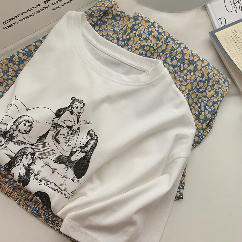 小C家 /动画素描白色t恤女设计感短袖ins潮圆领体恤夏季宽松上衣热门设计联盟服务商