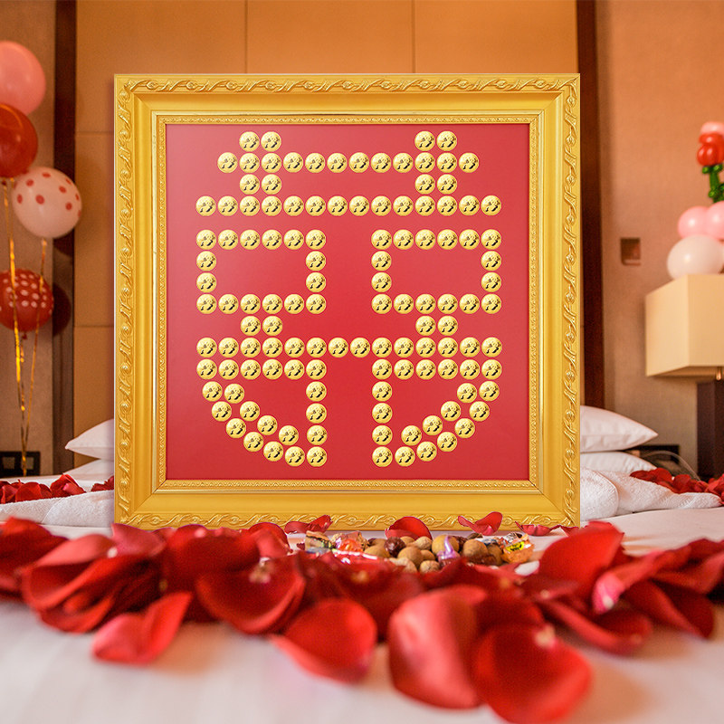 五毛钱硬币喜字贴五角5角diy模板带边框结婚装饰专用摆件百喜图热门设计联盟服务商