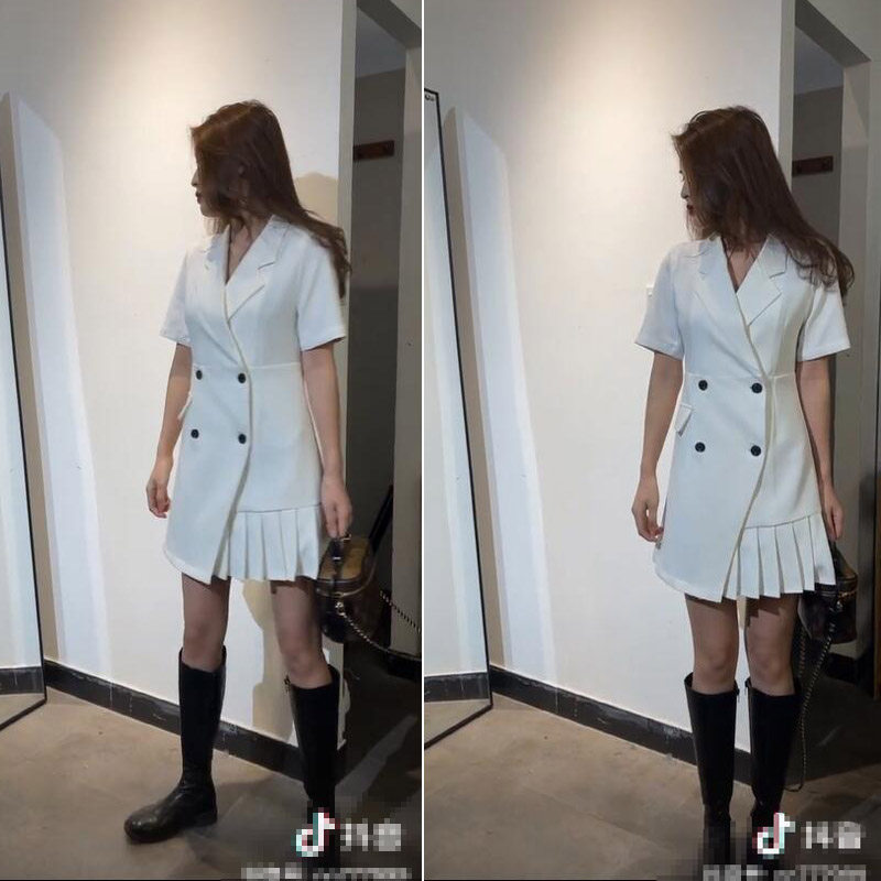 Nana服饰抖音同款白色设计感压褶西装裙春OL气质女人味连衣裙短裙热门设计联盟服务商